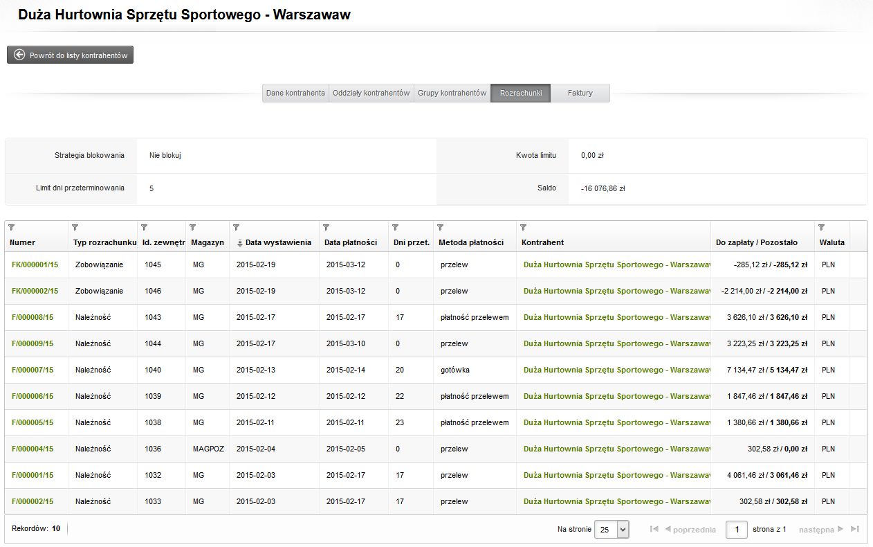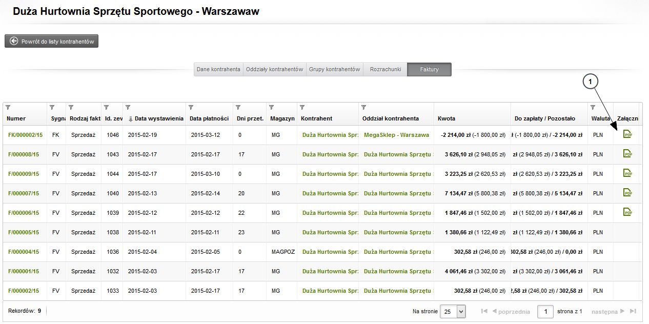 FakturyNa tej karcie możemy przeglądać faktury wybranego kontrahenta.
