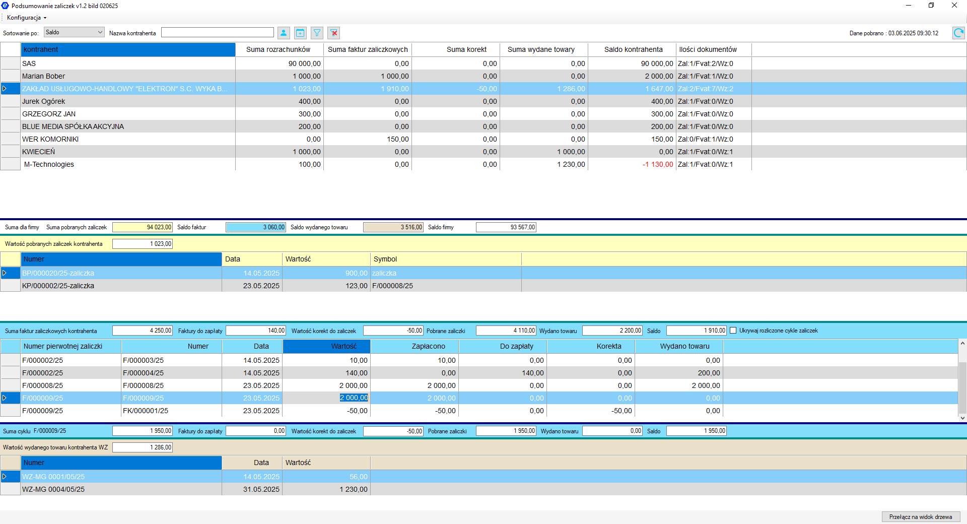 - Natychmiastowy podgląd stanu realizacji zaliczek dla wszystkich kontrahentów