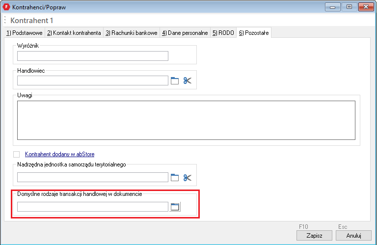 Kontrahent grupa wzajemnie sprzężonych pól pozwalających wprowadzić dane wystawcy dokumentu (pole obowiązkowe dla dokumentów VAT).