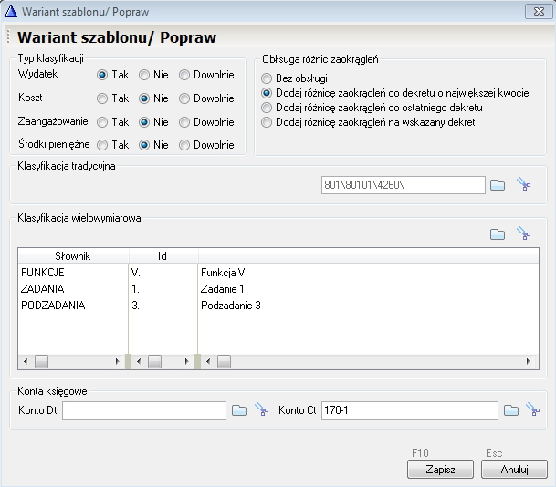 Definiowanie szablonów rozksięgowań wg klasyfikacji budżetowej - wariant BUDŻET