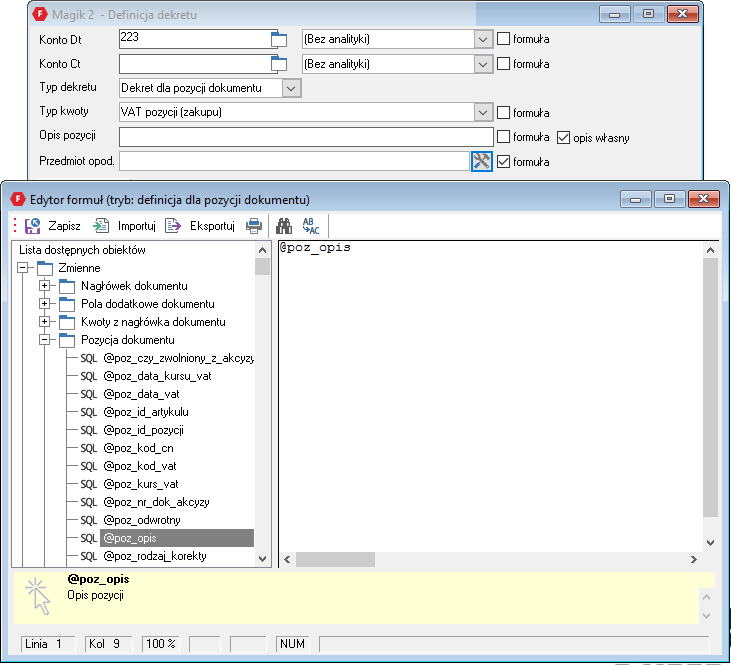 Zaawansowani użytkownicy modułu MAGIK II również przy pomocy metadefinicji, definiować dekrety dla odchyleń obsługując tym samym bardziej złożone przypadki jak np. dekretacja warunkowa na różne konta lub odchylenia dla dokumentów walutowych itp., co zostanie omówione w kolejnych rozdziałach.