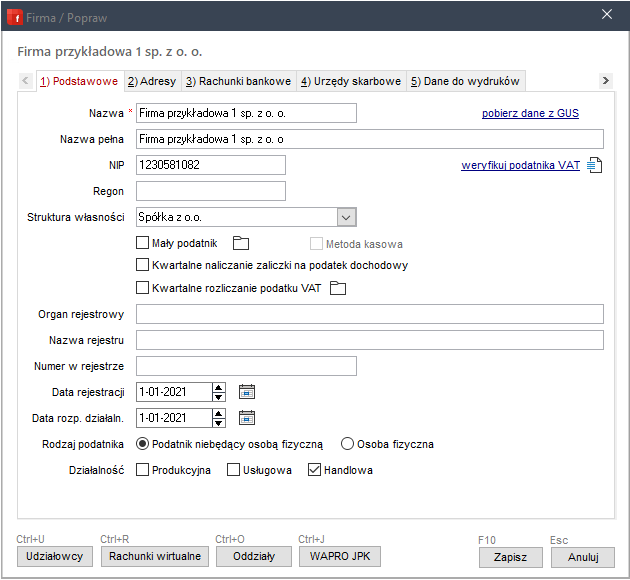 | F7 | Filtrowanie zapisów w tabeli, dotyczących wybranego kontrahenta |