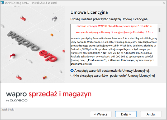Pobierz instalator ze strony internetowej Wapro ERP i uruchom go, jeśli instalator nie uruchomi się automatycznie.