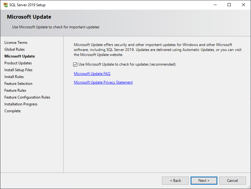 Zainstalowany MS SQL startuje i zatrzymuje się wraz z systemem operacyjnym. Nie ma potrzeby wykonywania jakichkolwiek dodatkowych operacji. Należy jednak pamiętać o aktualizacjach usługi SQL. Ręcznie instalowane pakiety Microsoft Cumulative Update for SQL Server zawierają komplet potrzebnych składników. Alternatywą jest włączenie w systemie Windows aktualizacji innych produktów firmy Microsoft (WIN+R ms-settings:windowsupdate-options) - kanał dostarcza tylko poprawki zabezpieczeń (GDR).