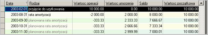 rata amortyzacji – w wysokości sumy odpisów amortyzacji w roku, w którym odpisana została ostatnia rata amortyzacji – z datą ostatniej operacji amortyzacji.