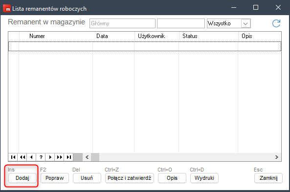 Aby dodać nowy remanent na liście remanentów roboczych należy kliknąć przycisk Dodaj.