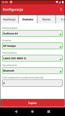 Po wprowadzeniu poprawnych wartości należy zapisać ustawienia konfiguracyjne i wybrać opcję Replikuj. Aby replikacja przebiegła pomyślnie telefon powinien znajdować się w jednej sieci z serwerem replikacji (połączony do sieci WiFi) lub posiadać dostęp do Internetu. W przypadku łączenia przez Internet niezbędne jest przekierowanie portu 2450 na routerze oraz ustawienie wyjątków na ten port w zaporze internetowej.