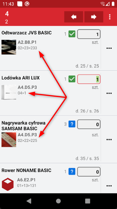 Dostęp do informacji o lokalizacji wielopoziomowej na urządzeniu jest możliwy z dowolnego miejsca, zarówno z kartoteki produktowej jak i każdego dokumentu. W pozycjach dokumentów jest dostępna ostatnio dodana ścieżka lokalizacji dla każdego z produktów, dzięki temu użytkownik ma wiedzę o lokalizacji, może też przejść tapnięciem w lokalizację do pełnej listy lokalizacji na karcie produktów.