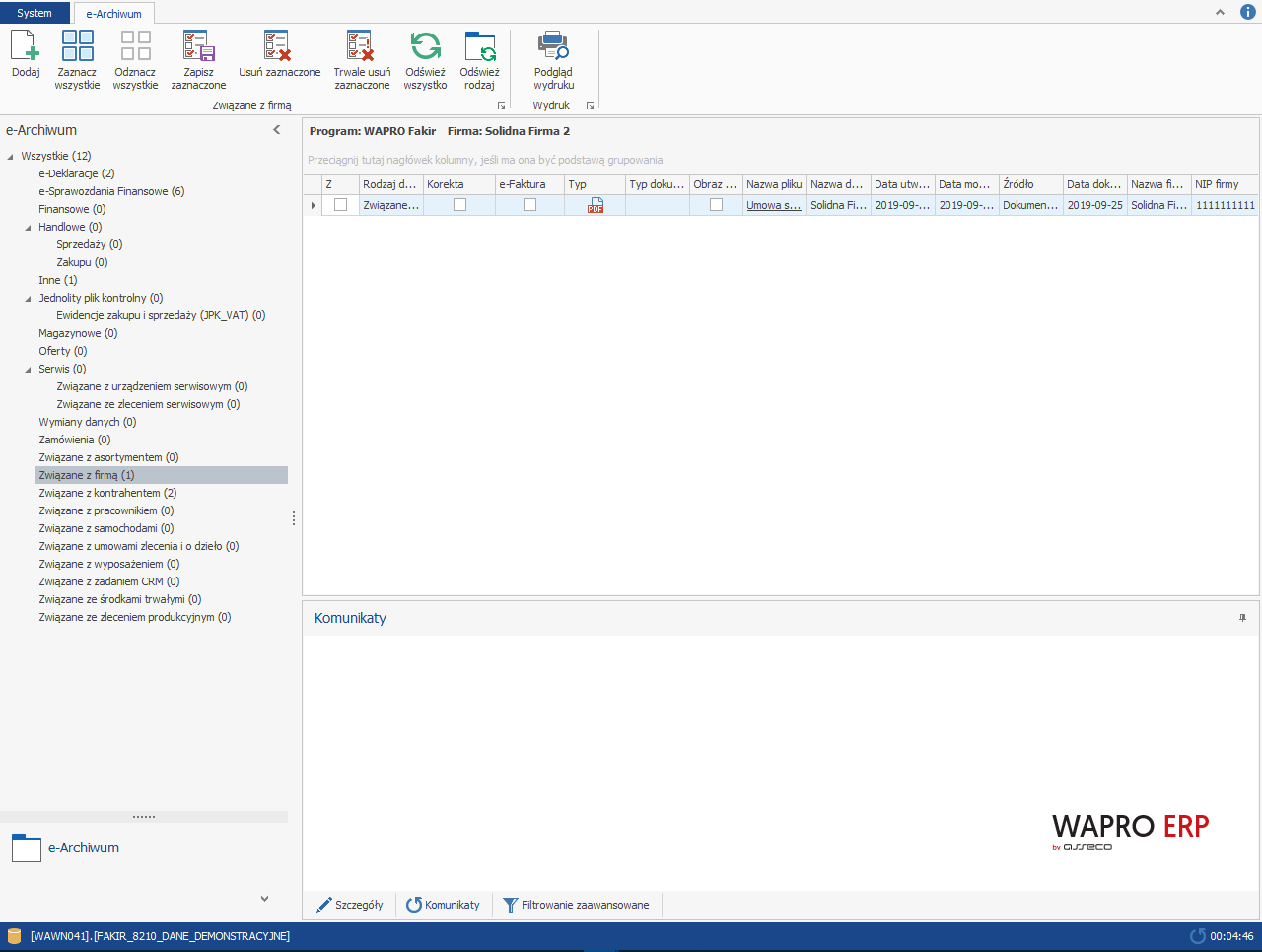 W systemie Wapro Fakir, w którym nie ma sztywnego podziału, w którym miejscu sprzedaż i zakup mają zostać zaksięgowane, e-Dokumenty zapisywane są w widoku Wszystkie | Inne.