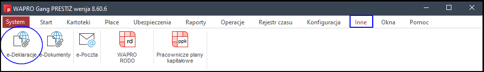 Aby przejść do modułu e-Deklaracji na karcie Inne wybierz pozycję e-Deklaracje.